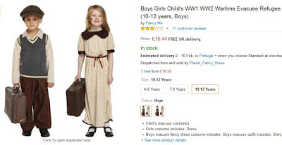 O Carnaval está a chegar, e a amazon.co.uk tem à venda «máscaras» da Planet Fancy Dress. Só que não são umas «máscaras» quaisquer, não representam super-heróis, princesas, bruxas ou fadas... Não, estas «máscaras», para crianças, sublinhe-se, pretendem reproduzir a indumentária utilizada pelos refugiados da I e da II Guerras Mundiais.