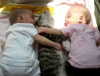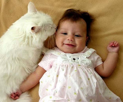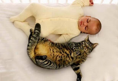 Uma das coisas que sempre temi foi a reação dos gatos ao terem de conviver com bebés pela primeira vez. Mas cada vez mais tenho falado com pessoas e visto imagens e vídeos que me vão tranquilizando. Por isso, espero a curto prazo poder eu própria tirar fotografias como estas: